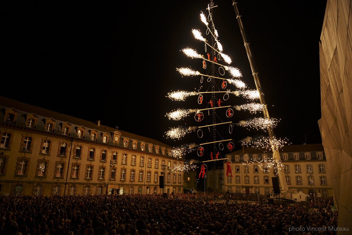 Transe Express émerveille le monde avec ses créations aériennes monumentales. Mêlant jeu en proximité du public et machinerie, ses spectacles mettent en scène la rue à la verticale.
