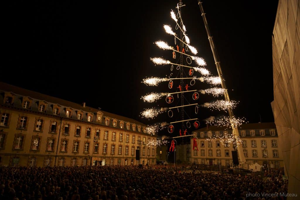 ADN – Vertical odyssey is an extraordinary creation—an electro-hip-hop opera performed 40 meters above the ground, combining live and recorded music, circus performance, vertical dance, and monumental scenography. This inhabited sculpture, featuring 16 performers, is a technical tour de force.